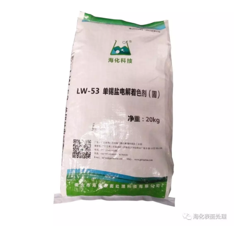 LW-53單錫鹽電解著色劑是白色至淺黃色結(jié)晶,適合于鋁型材氧化后上色之用。使用該添加劑具有良好的綜合性能,槽液相當(dāng)穩(wěn)定,上色均勻性,重現(xiàn)性好。易溶于水,性能穩(wěn)定,但是必須避光封存。